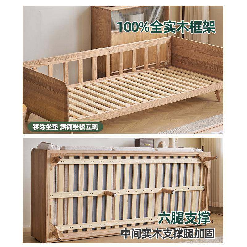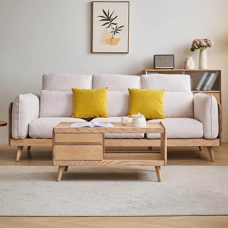 全实木沙发现代简约客厅新中式高靠背沙发棉麻小户型直排布艺沙发