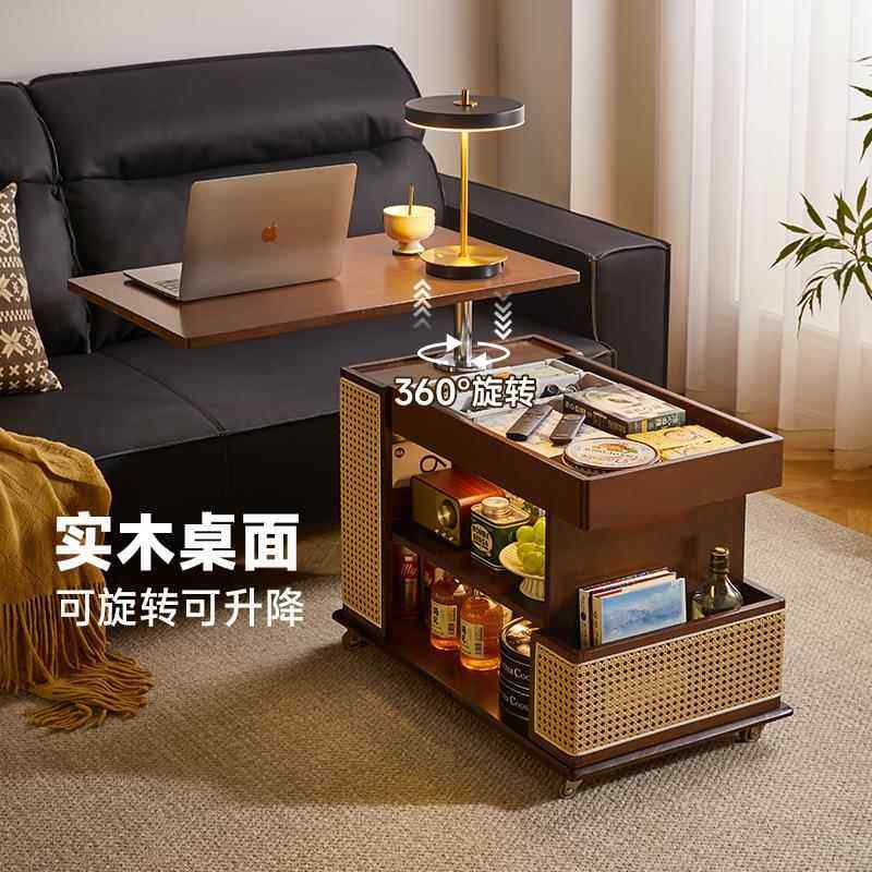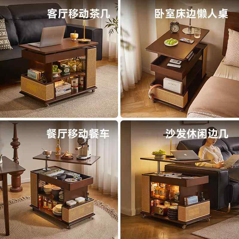 家逸可移动茶几实木沙发边几餐边柜可升降旋转客厅茶桌笔记本桌