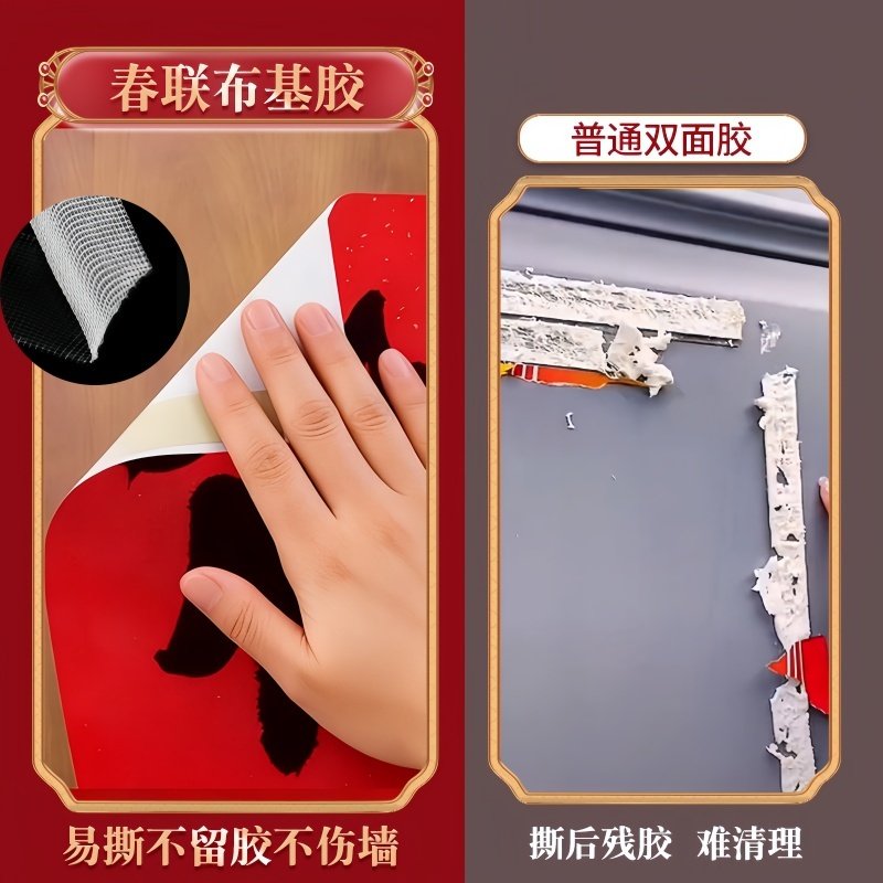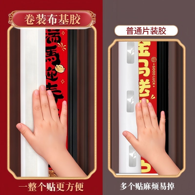 贴春联对联双面胶带撕下不留痕迹红色布基无痕胶布婚庆婚房装饰气球喜字福字年画高粘度强力固定墙面专用粘性