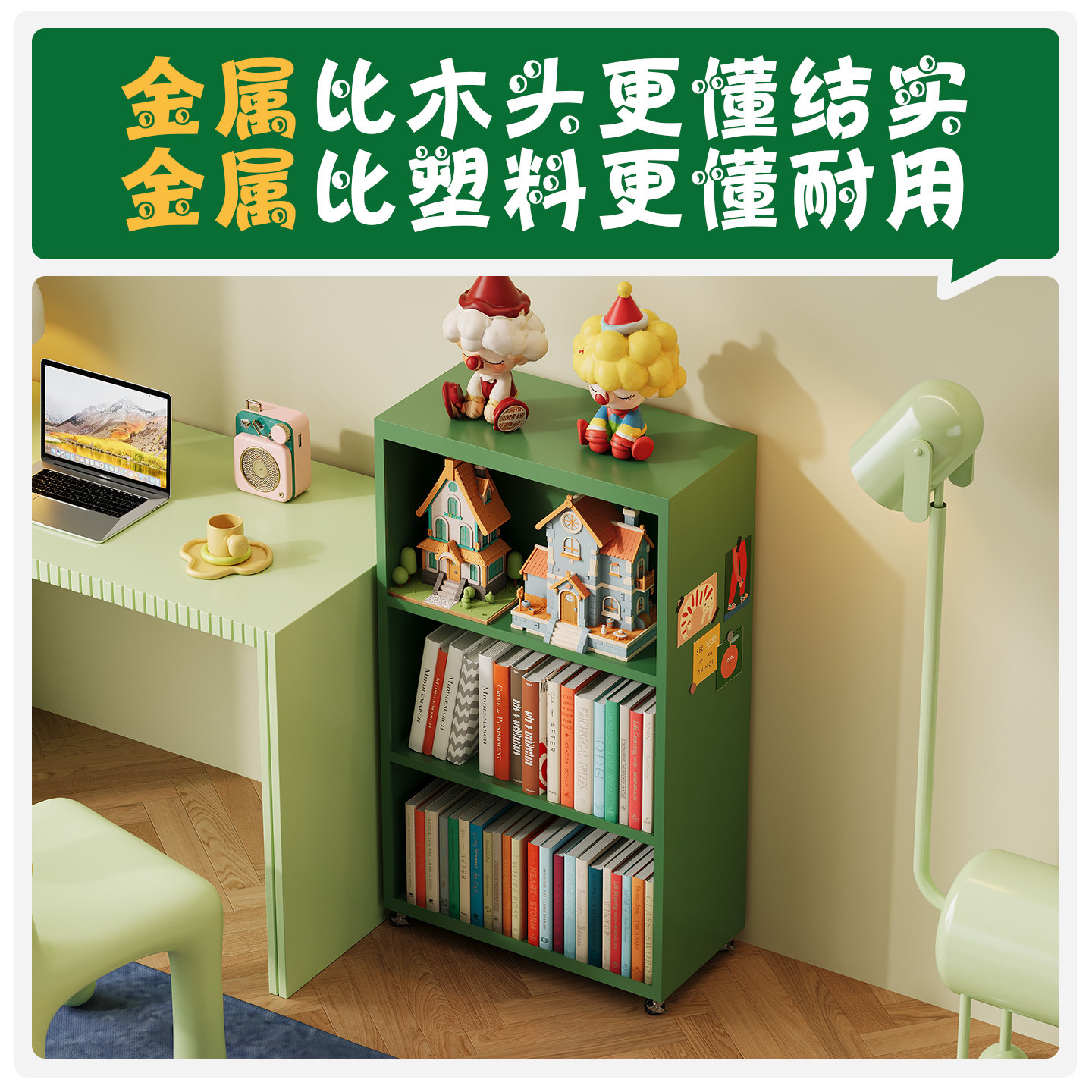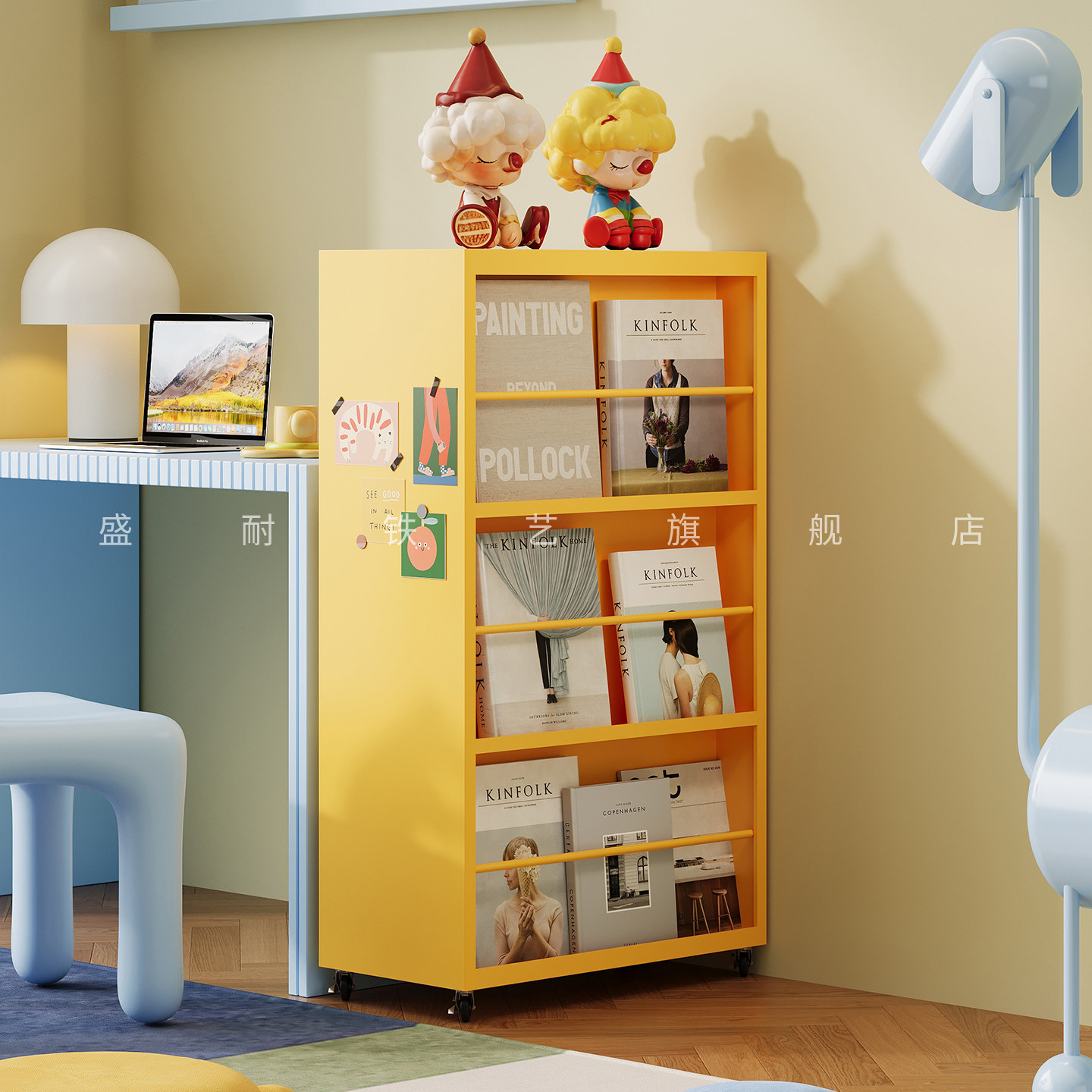 可移动双面小书架展示架儿童阅读区铁艺书桌边带轮子绘本架置物架
