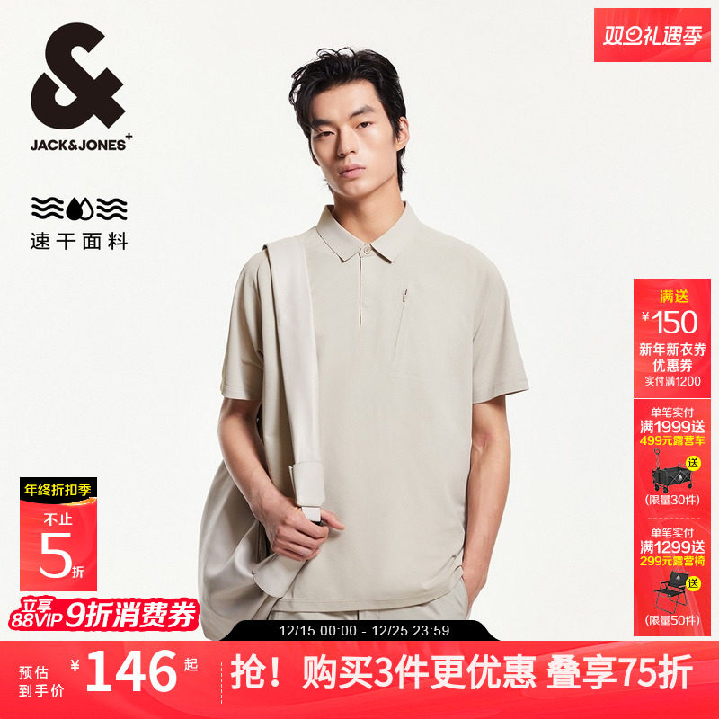 【速干压胶】杰克琼斯男装士polo衫拉链口袋短袖T恤爸爸高端25秋