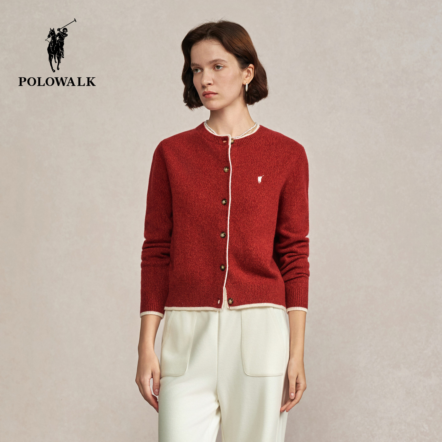 【100%绵羊毛】POLOWALK女式羊毛衫2025冬季新品经典圆领休闲上衣
