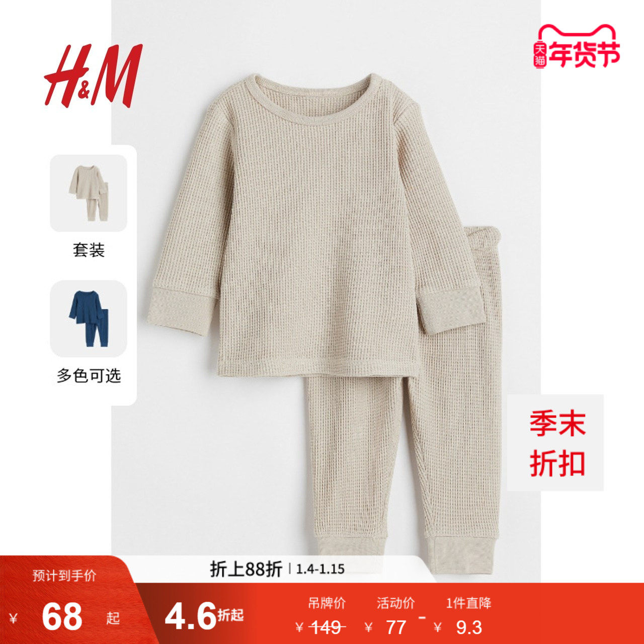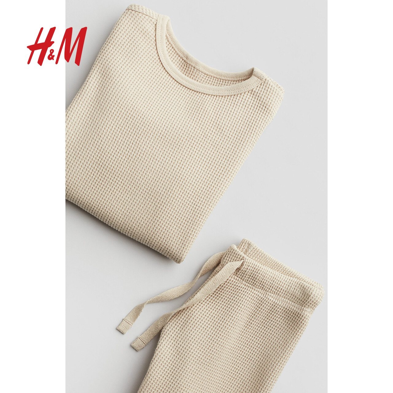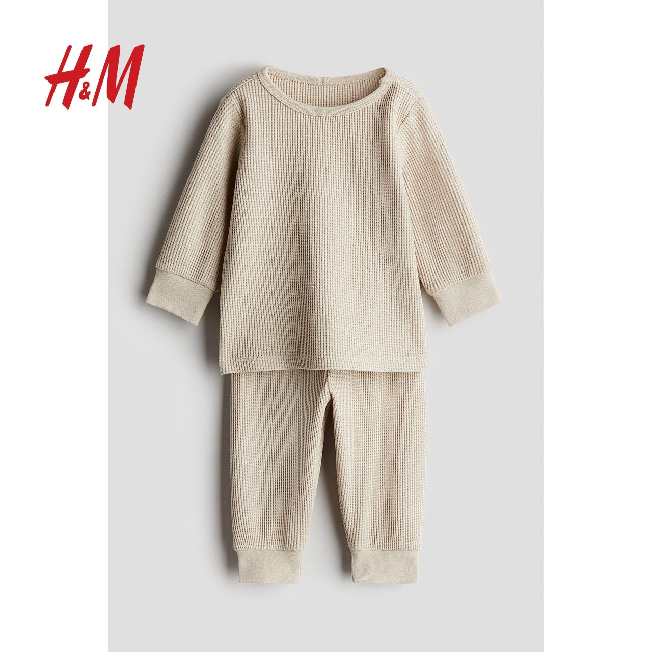HM童装男婴女婴套装冬季柔软华夫格棉质长袖长裤1005036