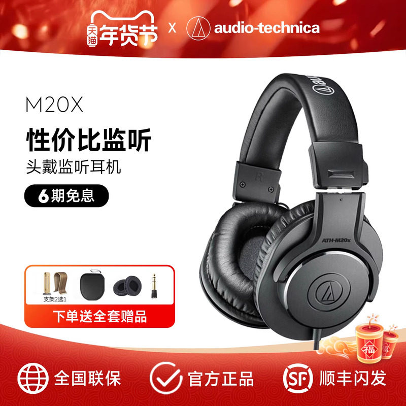 铁三角ATH-M20X电脑头戴式专业监听耳机有线贝斯电钢电吉他耳返