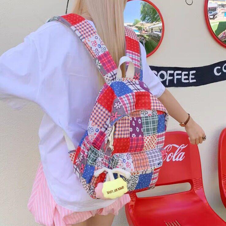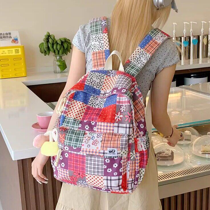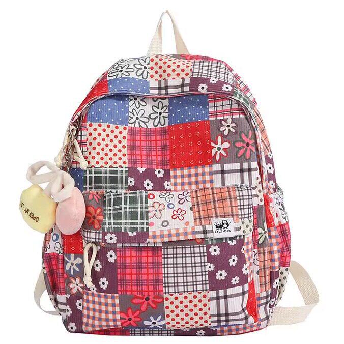 民族风双肩包女2025新款彩色碎花背包妈咪包小众设计学生迷你书包