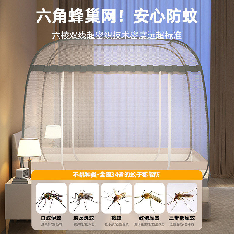 南极人免安装蒙古包蚊帐家用卧室防摔婴儿童防止掉床帐篷全罩式