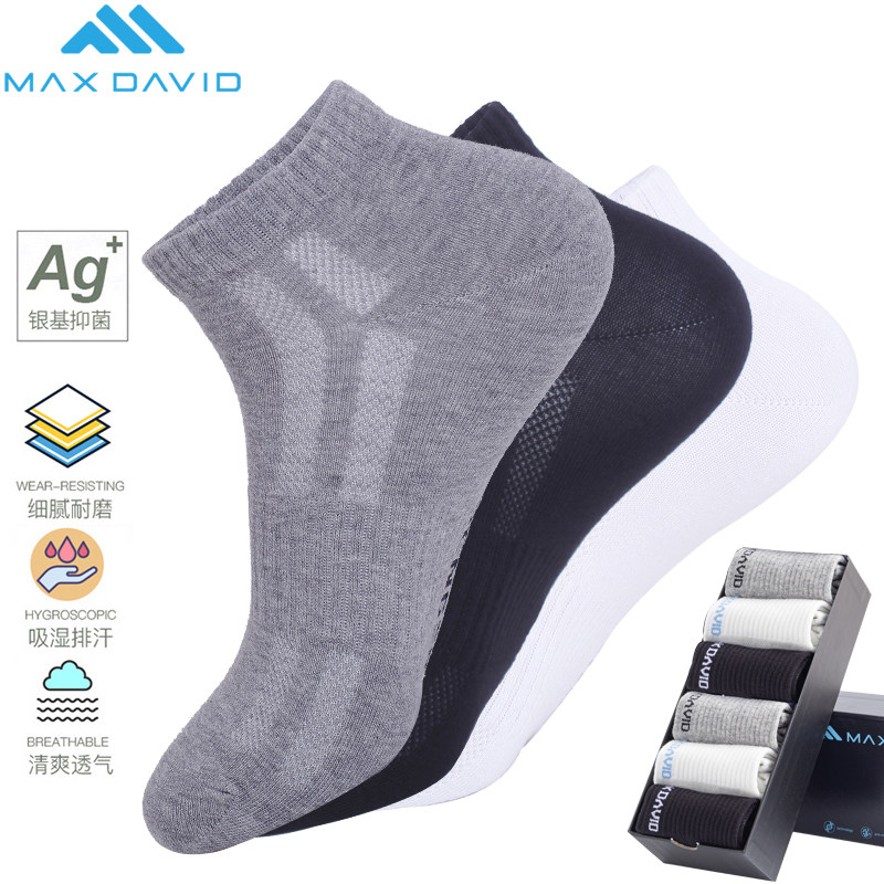 MaxDavid抗菌袜纳米银防臭男棉袜短筒吸汗透气运动袜纯色除臭船袜