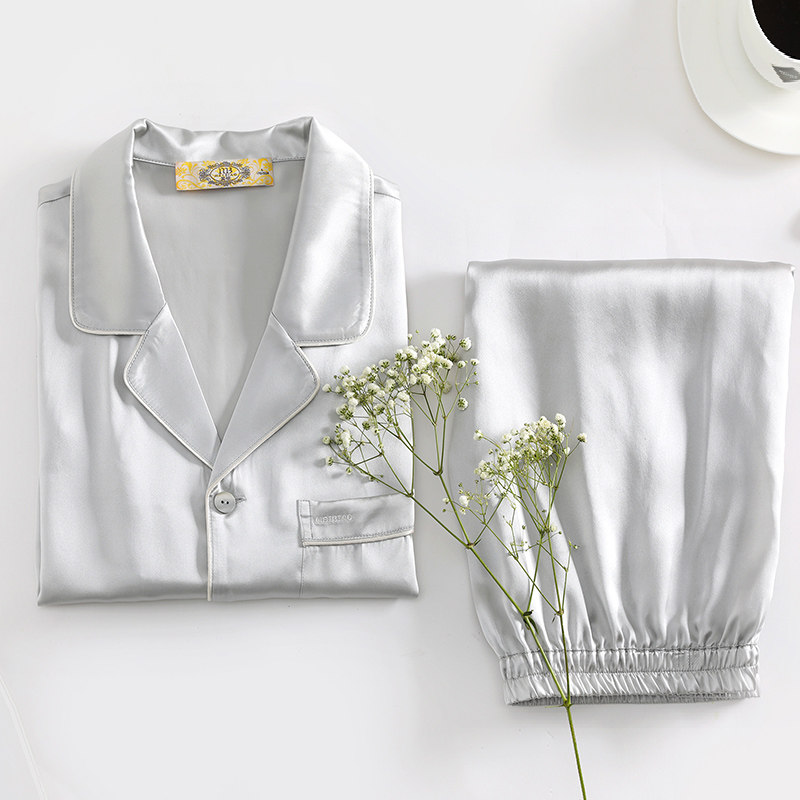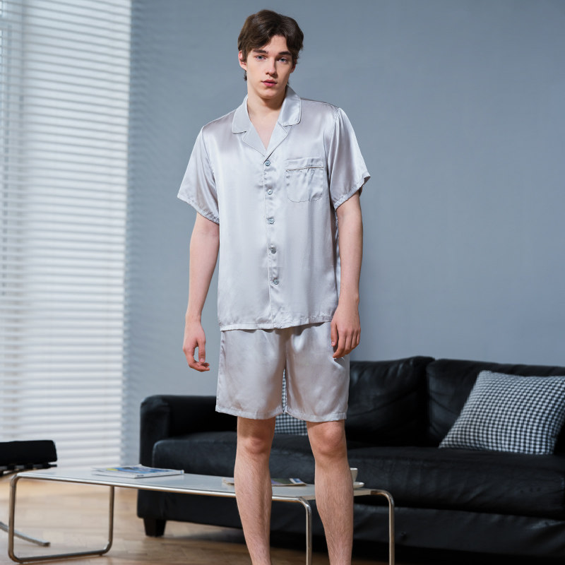 美标男士短袖短裤真丝睡衣套装春夏款6A级桑蚕丝可外穿丝绸家居服
