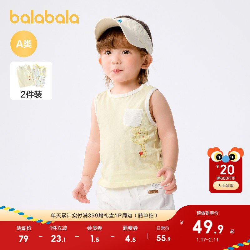 巴拉巴拉宝宝背心婴儿上衣男女童短袖T恤夏季薄款2025新两件装萌