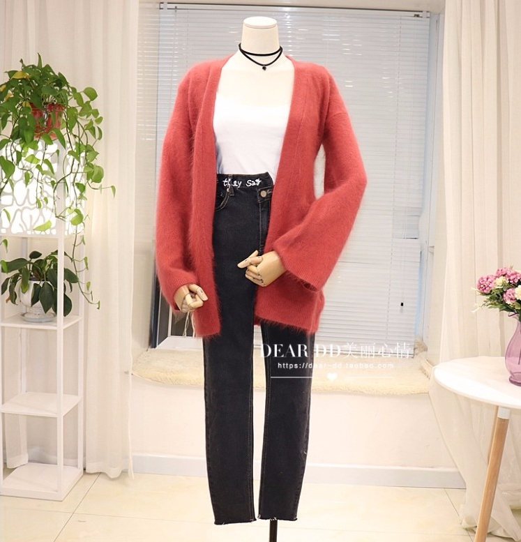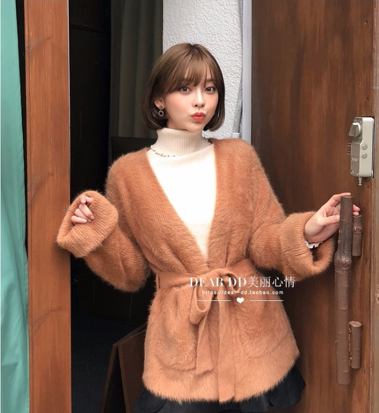 特价水貂绒中长款毛衣女秋冬季新款温柔宽松慵懒风兔毛针织衫外套