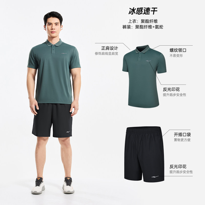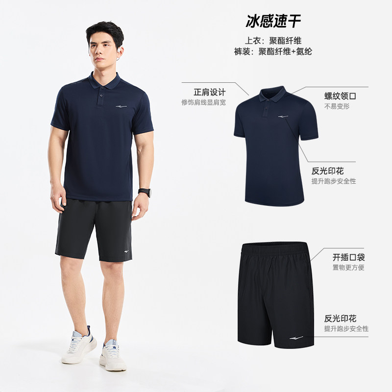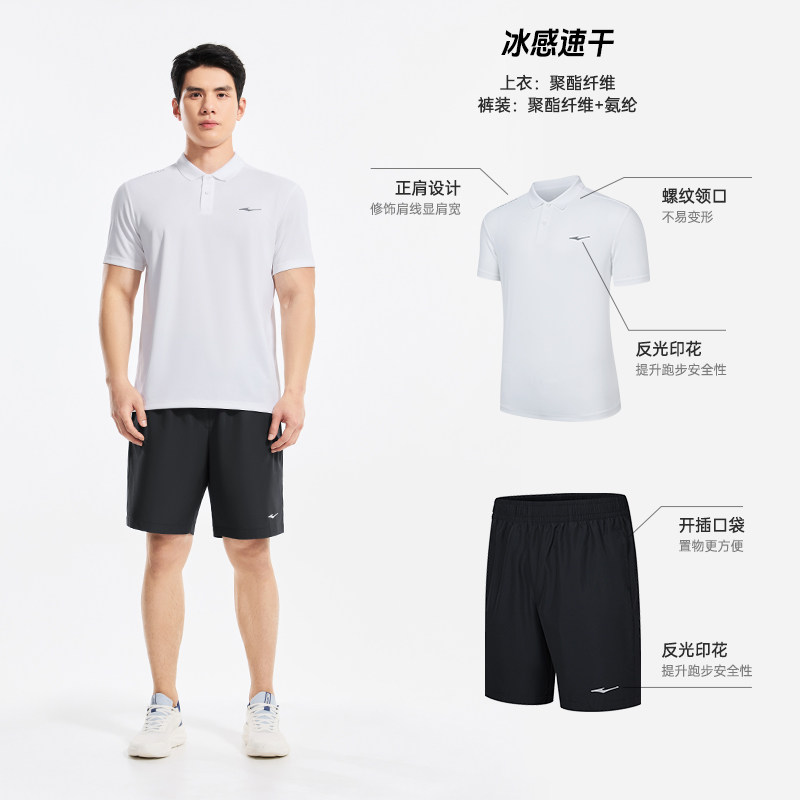 鸿星尔克运动套装男夏季新款男士通勤羽毛球服速干polo衫短袖短裤