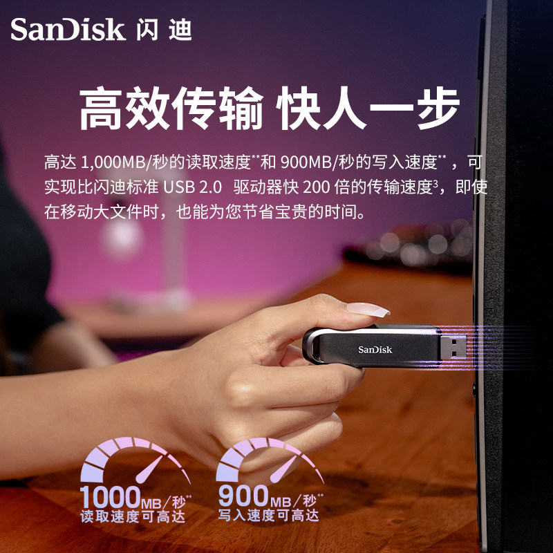 闪迪USB3.2 Gen2高速固态电脑U盘512G大容量移动优盘CZ820