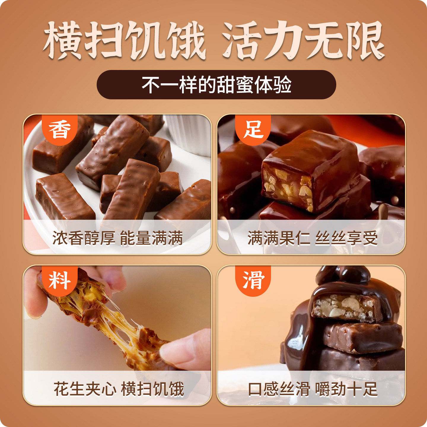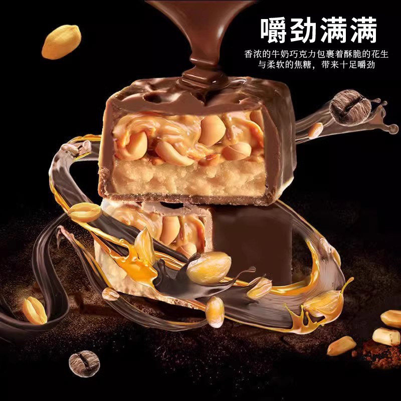 果仁花生夹心巧克力架能量棒士力长条批发糖果小零食(代可可脂)