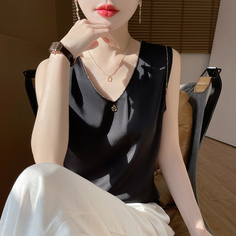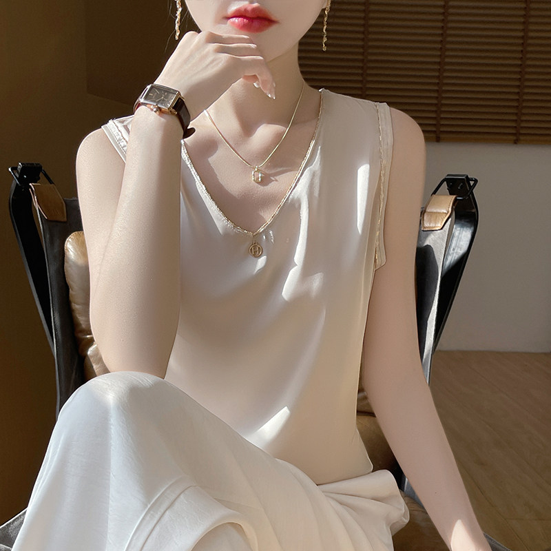 2025年夏季新款缎面吊带背心女宽肩带V领带吊坠西装内搭无袖上衣
