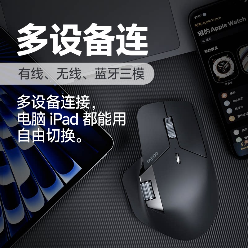 雷柏MT760有线无线鼠标静音大手人体工学充电蓝牙鼠标笔记本办公