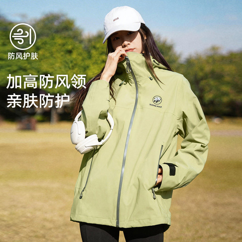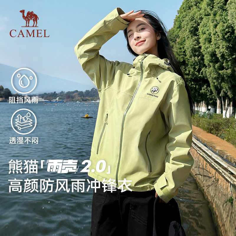 [雨壳]骆驼户外熊猫冲锋衣女款2026春夏防风防水登山服外套男