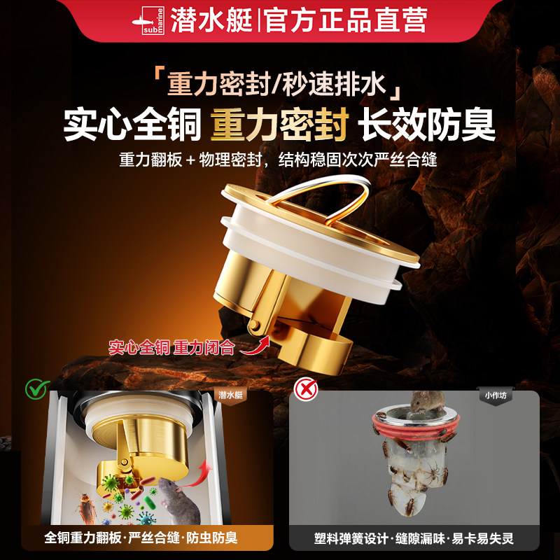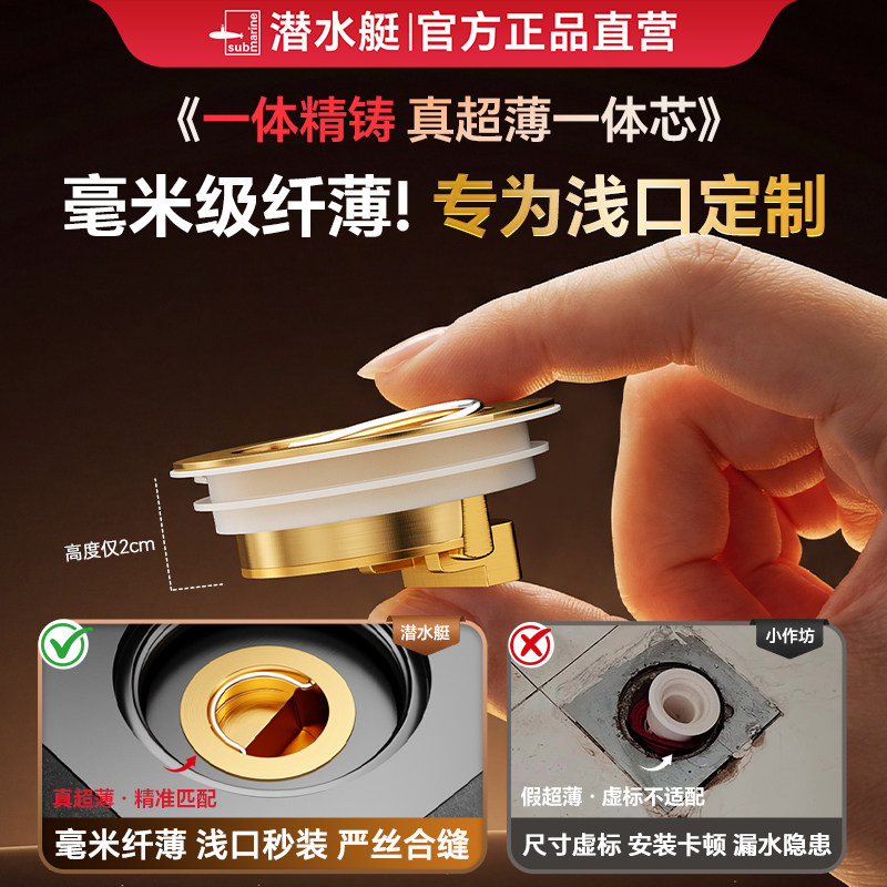 潜水艇地漏芯防臭器防虫短款通用内芯淋浴下水道防返臭神器反味盖