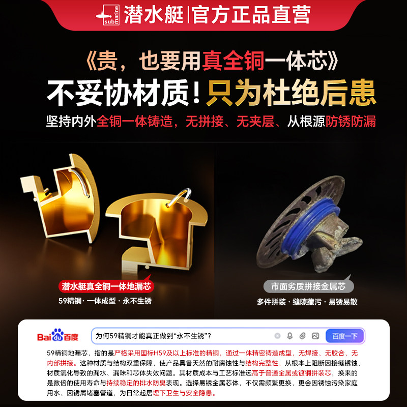 九牧卫浴旗舰店官网卫生间防臭304不锈钢地漏防虫洗衣机地漏