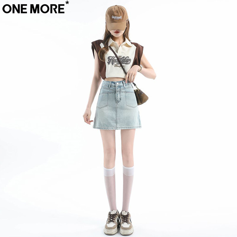 One More美式防走光牛仔短裙女夏季新款辣妹外穿显瘦短款半身裙子
