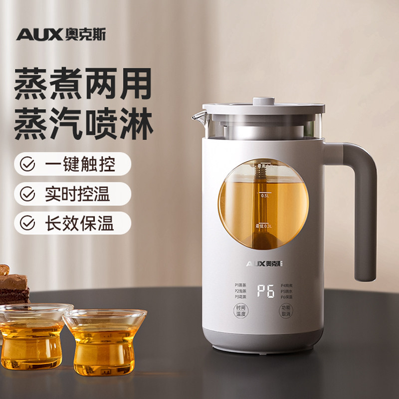 奥克斯养生壶煮茶壶煮茶器全自动玻璃小型蒸煮两用喷淋式花茶壶