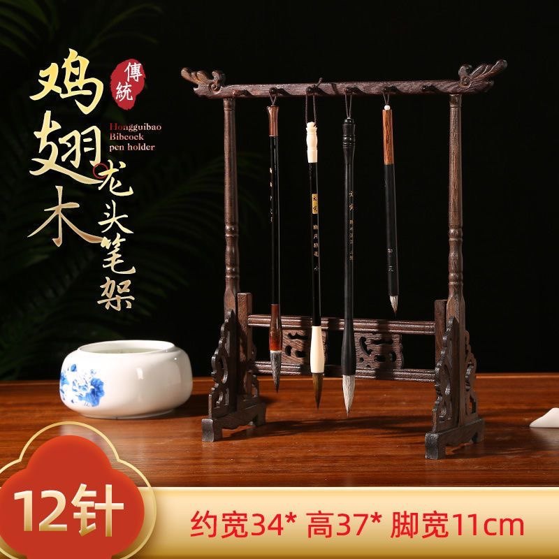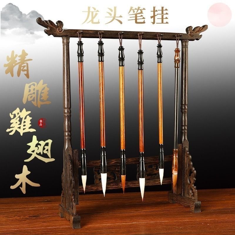 实木精雕毛笔架复古龙头鸡翅木架子毛笔挂架现代书房笔架笔挂摆件