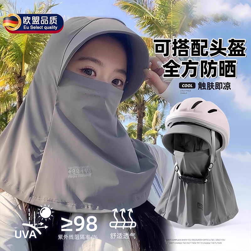 防晒面罩全脸防紫外线夏帽子口罩冰丝一体护颈骑行电动车可带头盔