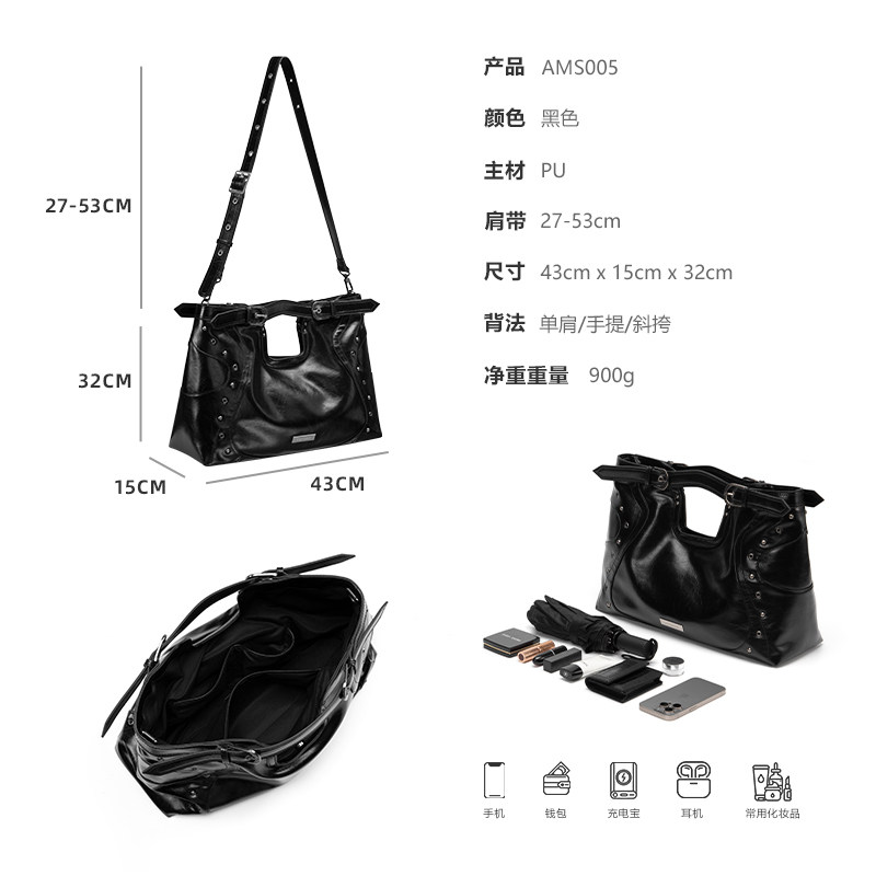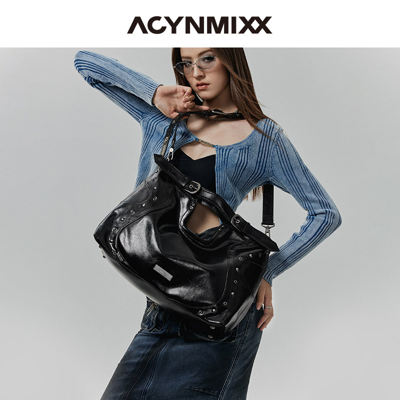 Acynmixx复古铆钉机车包女原创小众高级感大容量托特包单肩斜挎包