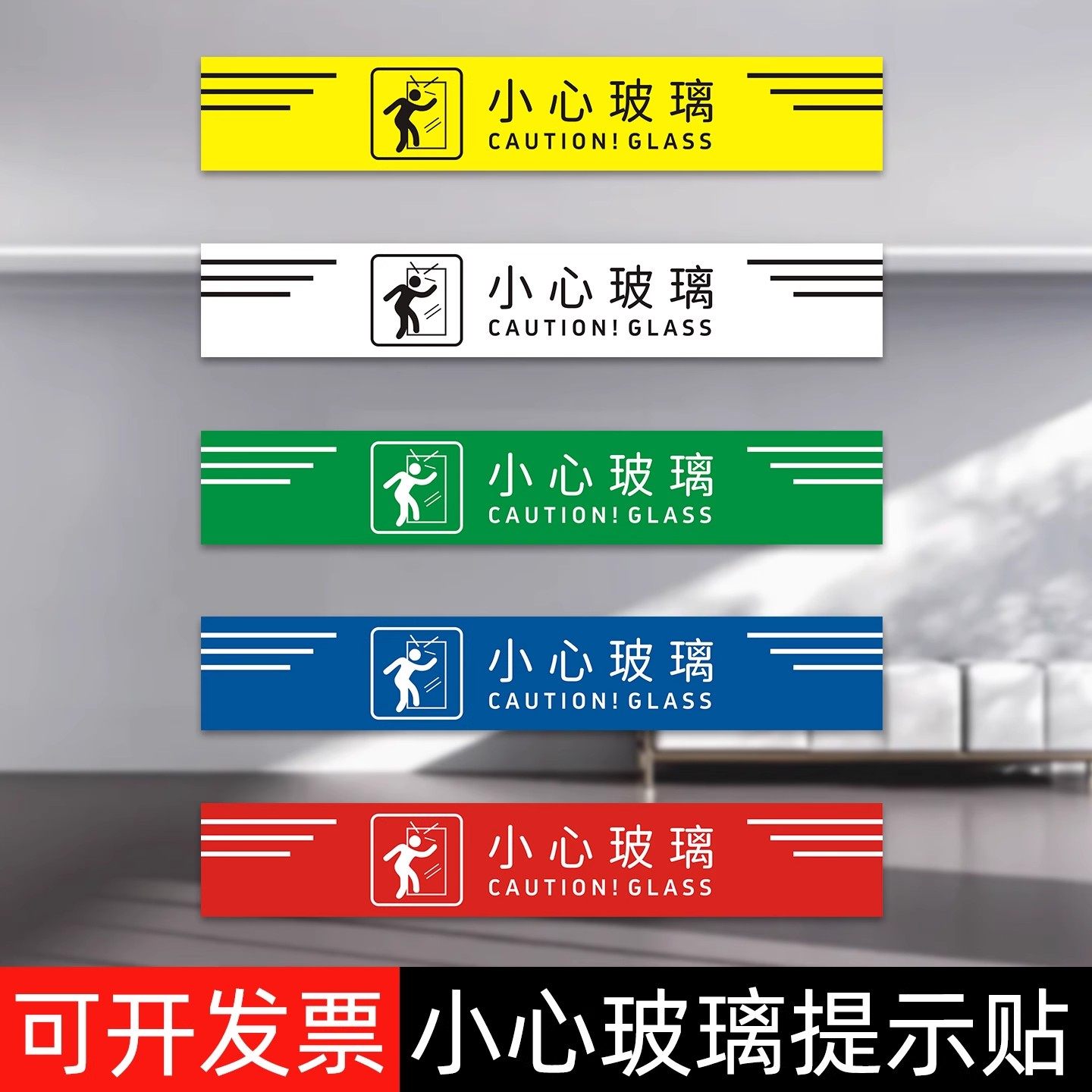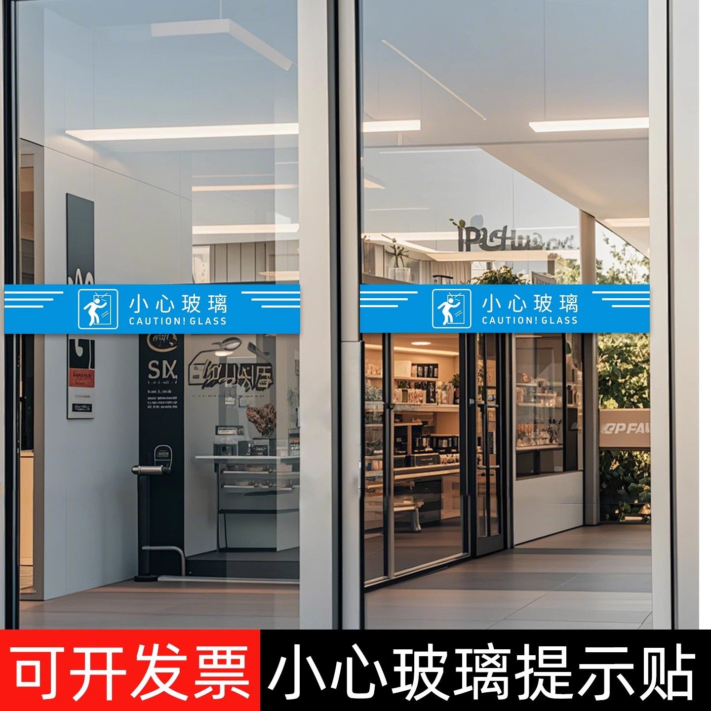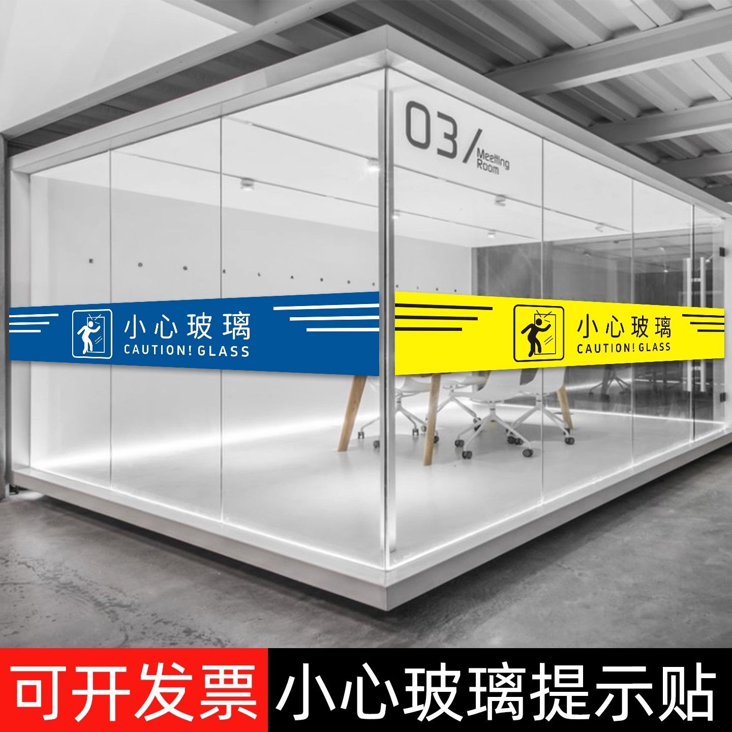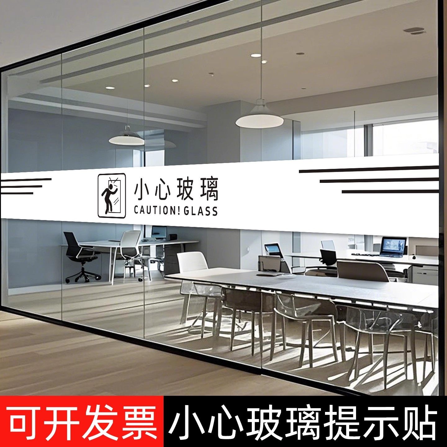 小心玻璃提示贴防撞条玻璃门贴纸警示标识贴当心玻璃腰线背胶贴
