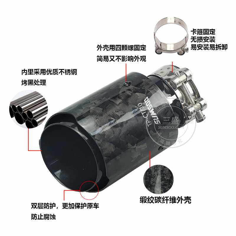 改装尾喉锻造纹跨境新品碳纤维四色不锈钢汽车改装汽车排气管尾喉