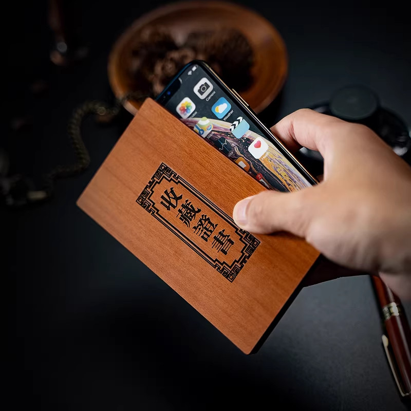 迷你版高档木板雕刻收藏证书外壳定制古玩文玩翡翠字画古董玉雕大师作品鉴定证书内页内芯打印制作批发包邮