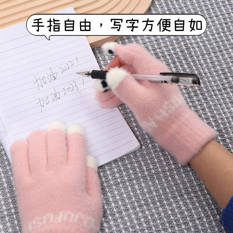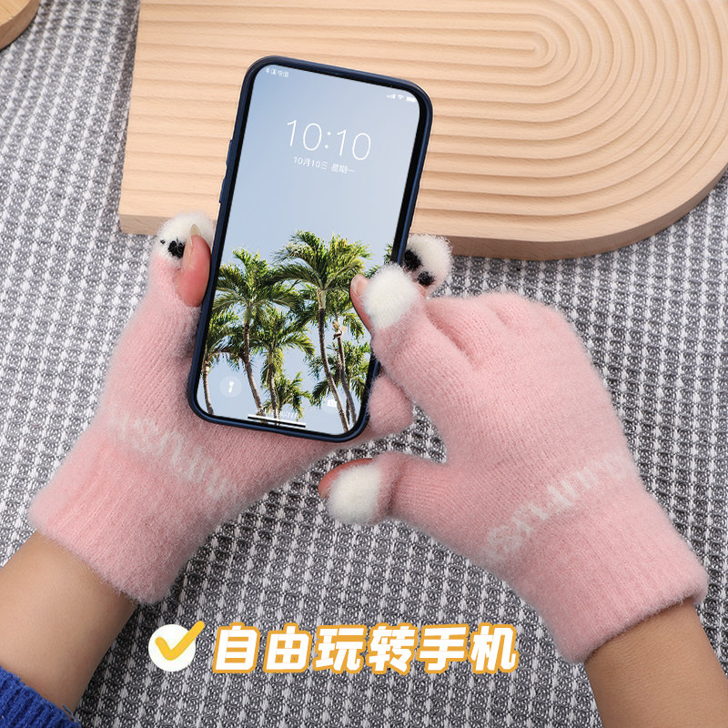 手套女士冬季新款加厚保暖大童可爱学生防寒毛线可触屏冬天男神器