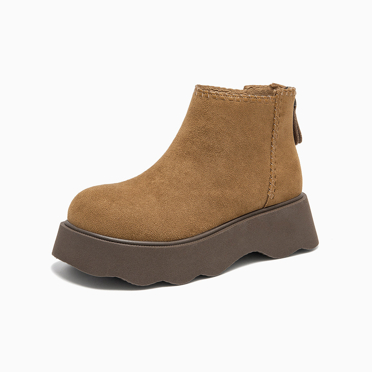 牛皮~骄屿复古圆头雪地靴加绒保暖毛毛棉靴两穿平底棕色勃肯短靴