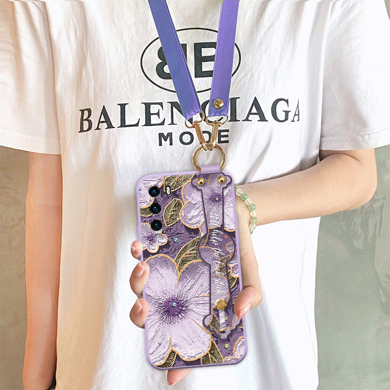 油画白茶花适用于华为p40手机壳Pura80新款p60花朵P60Pro高级p50女款p50pro硅胶p30斜挎挂绳防摔保护套