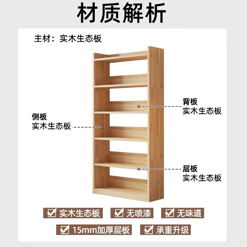松木实木书架一体靠墙落地置物架儿童书柜学生家用储物柜收纳柜子