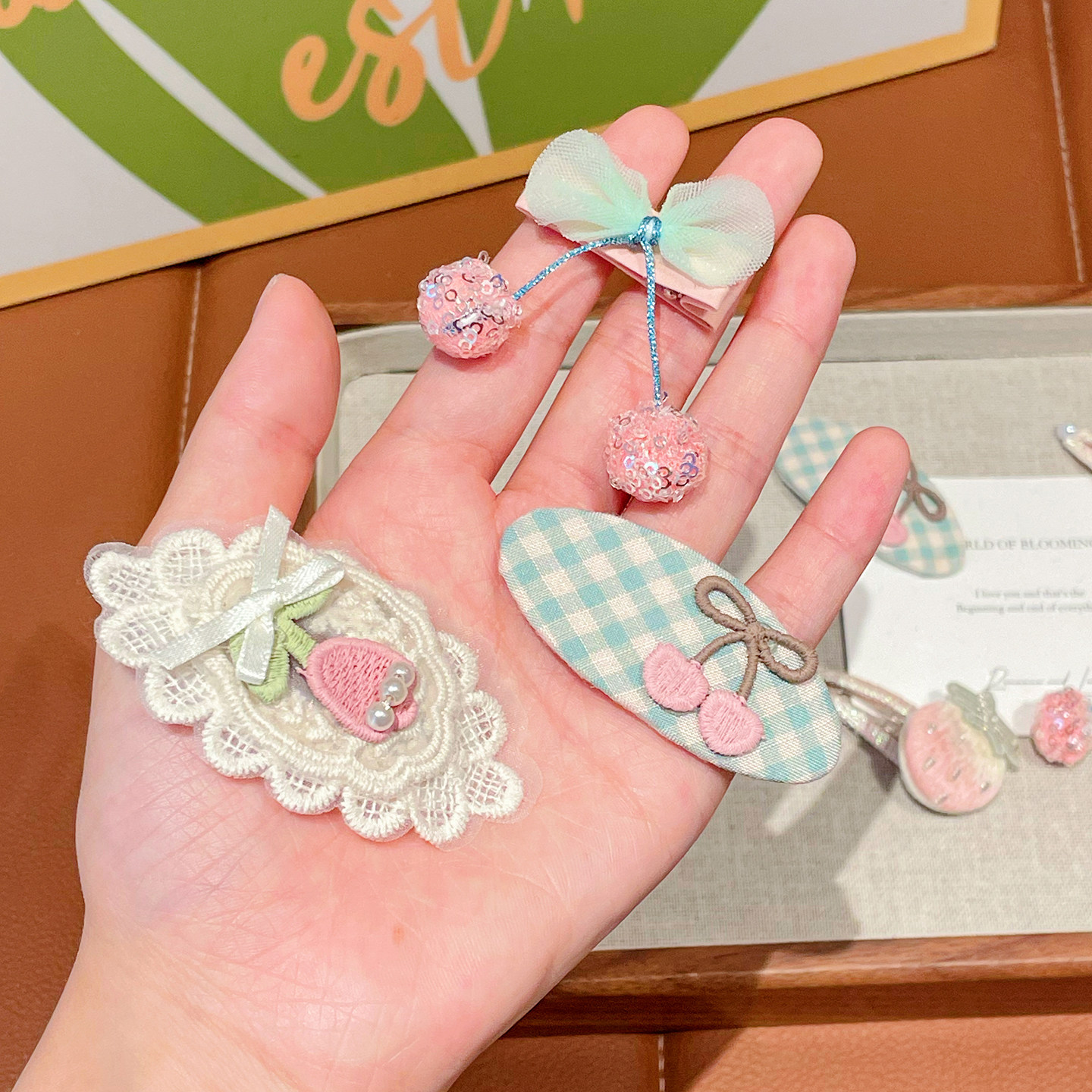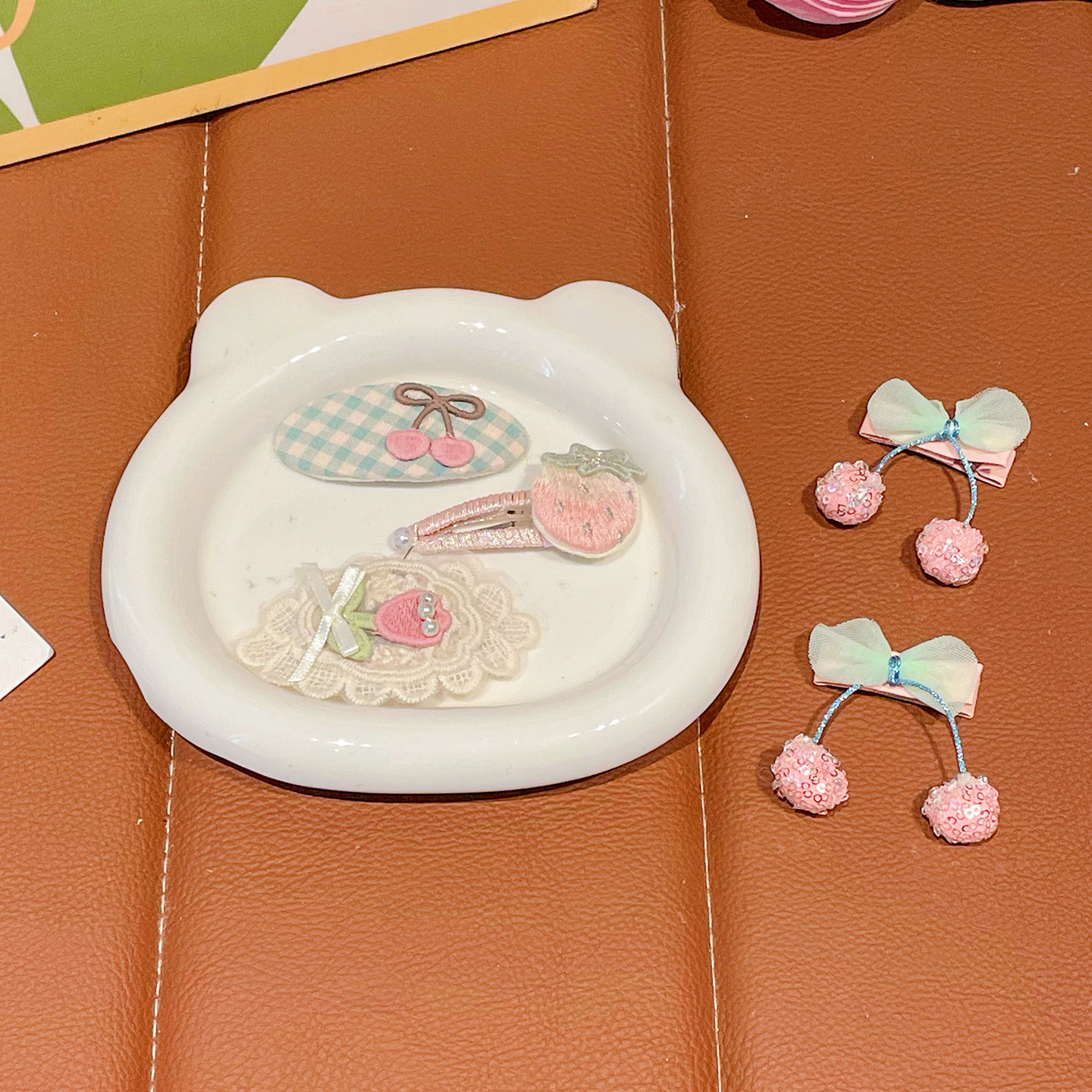 可爱格子韩系儿童发夹甜美樱桃小熊女孩BB夹发卡女童刘海夹子头饰