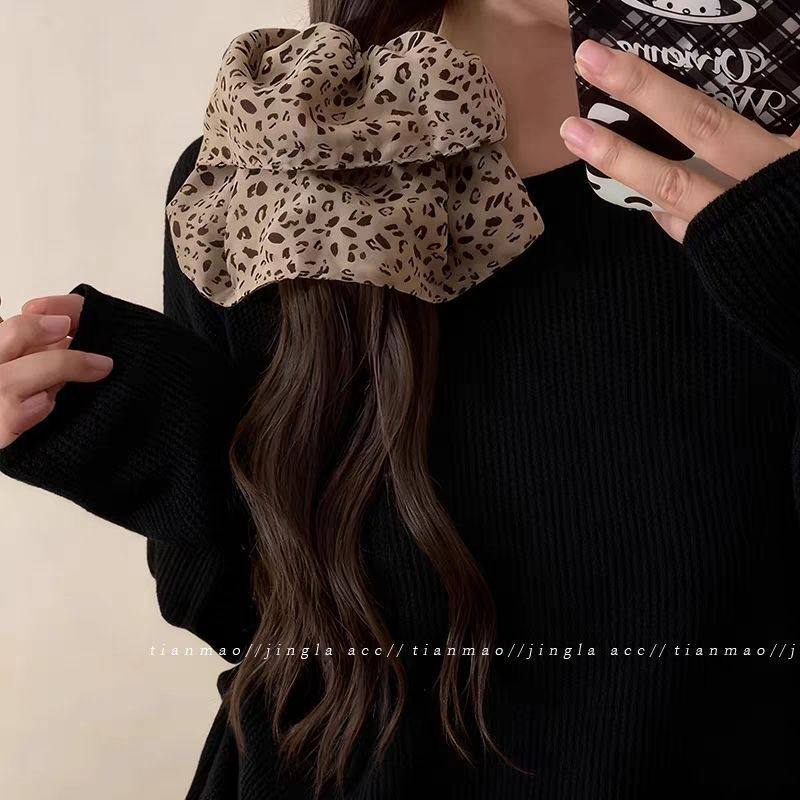 豹纹大肠发圈女2025新款头绳高弹力耐用发绳高级感头花丸子头发饰
