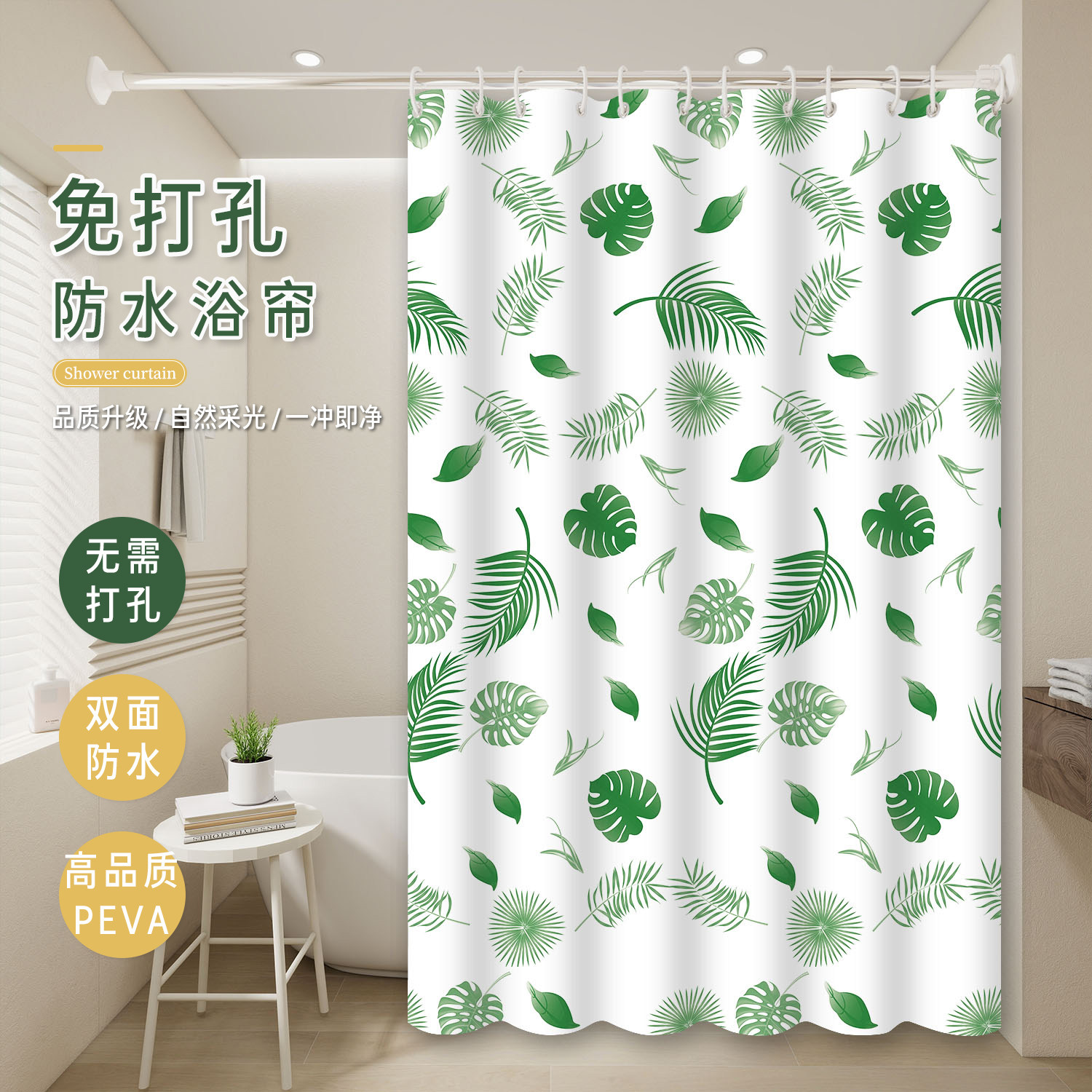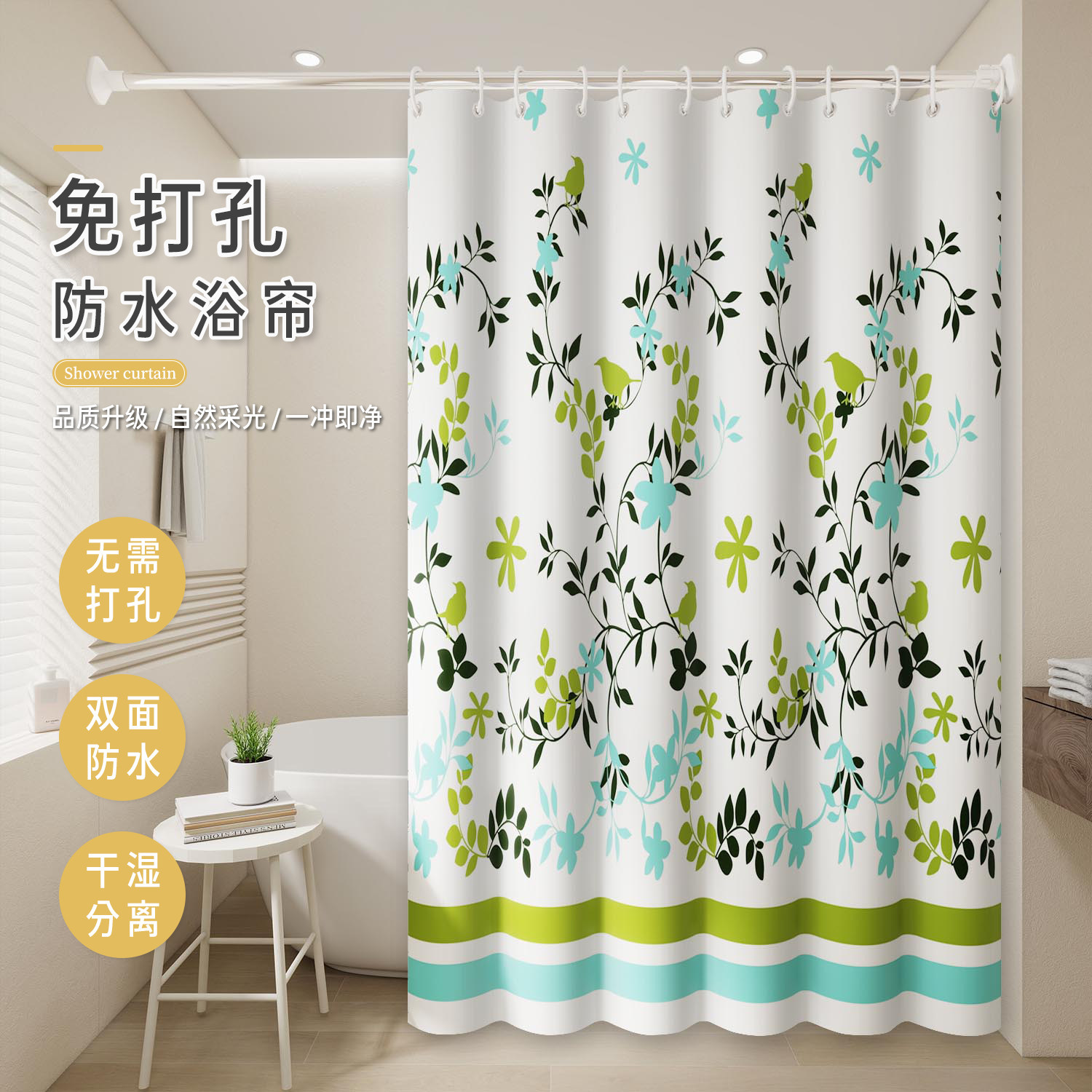 浴帘浴室洗澡帘卫生间窗帘门帘免打孔套装防水防霉淋浴隔断帘