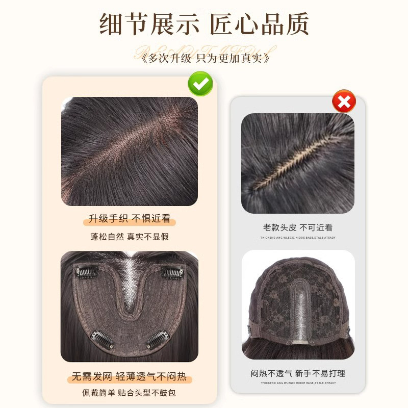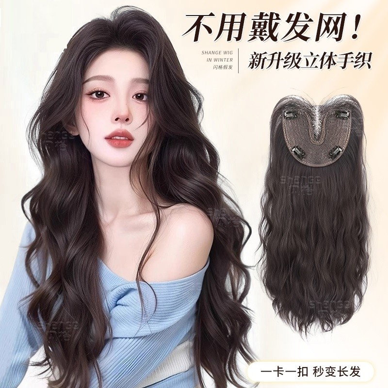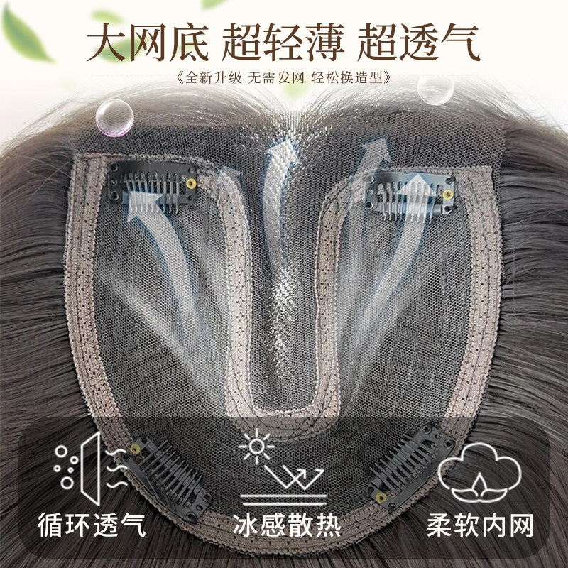 不用戴发网的假发女片头顶遮白发隐形蓬松颅顶羊毛卷长卷发补发片