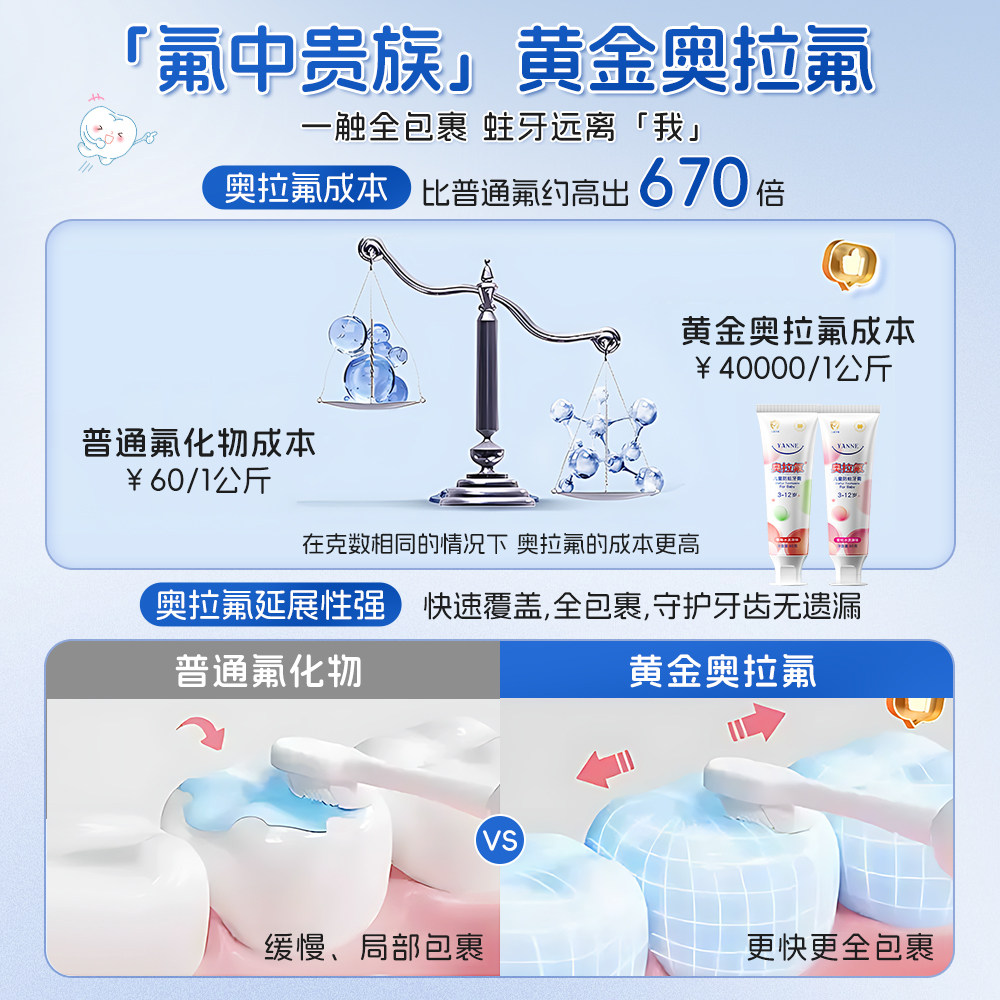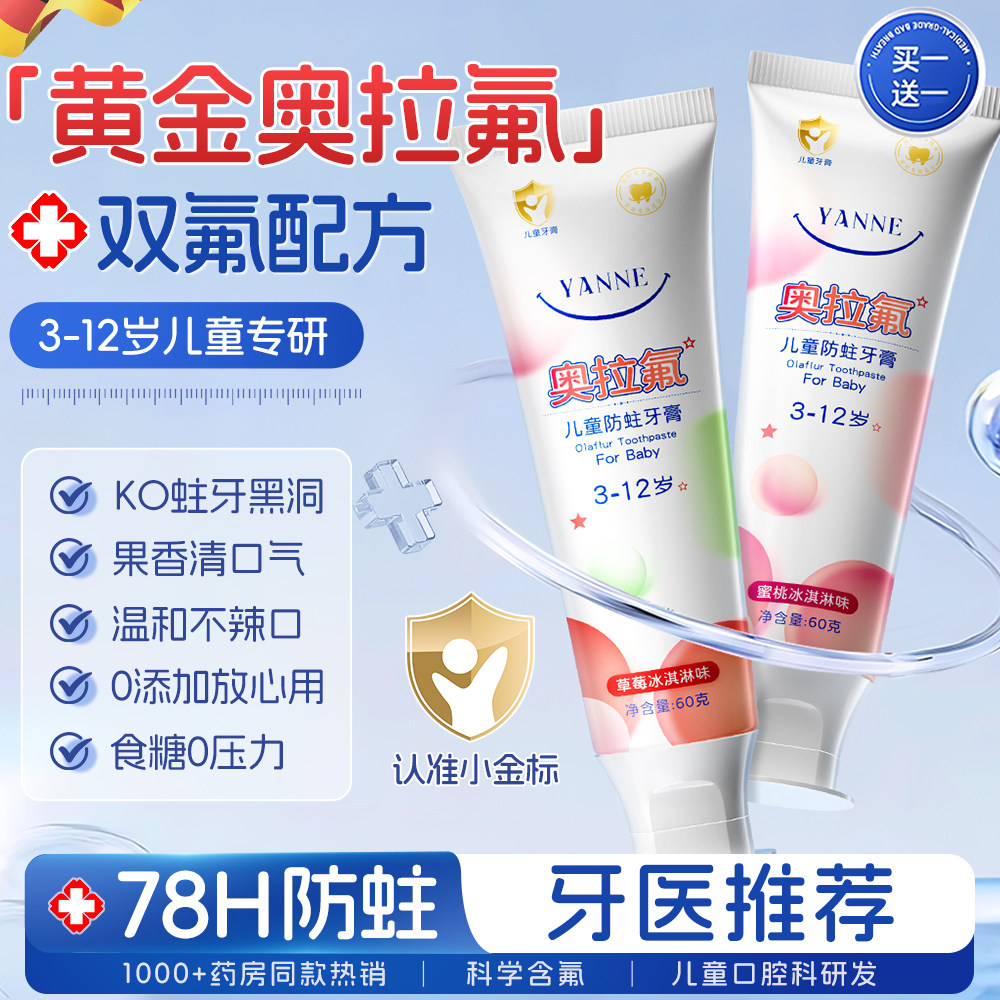 【高效防蛀】babycare奥拉氟儿童牙膏防蛀牙清洁宝宝防龋齿1-6岁