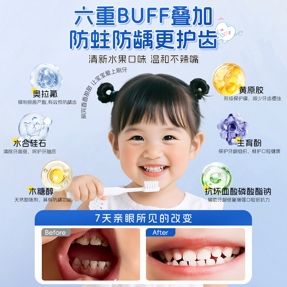 贝德美儿童健齿益生菌牙膏低氟固齿宝宝婴幼儿童牙刷牙膏牙龈护理