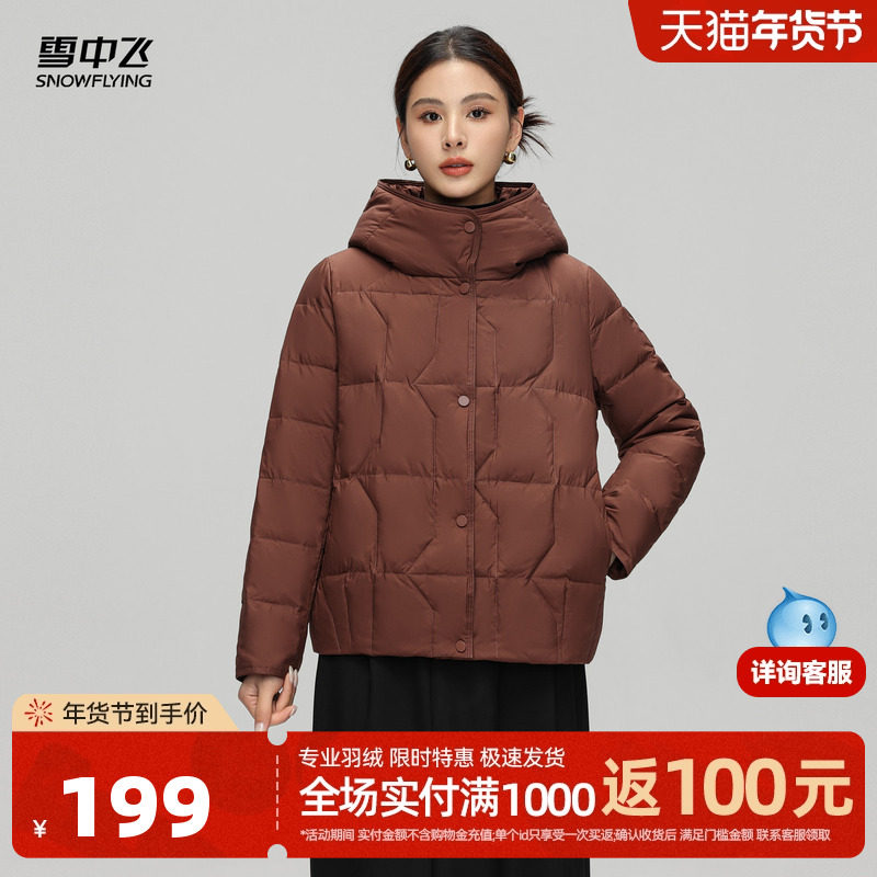 雪中飞2025冬新款女士短款连帽羽绒服妈妈款简约时尚纯色暖御寒