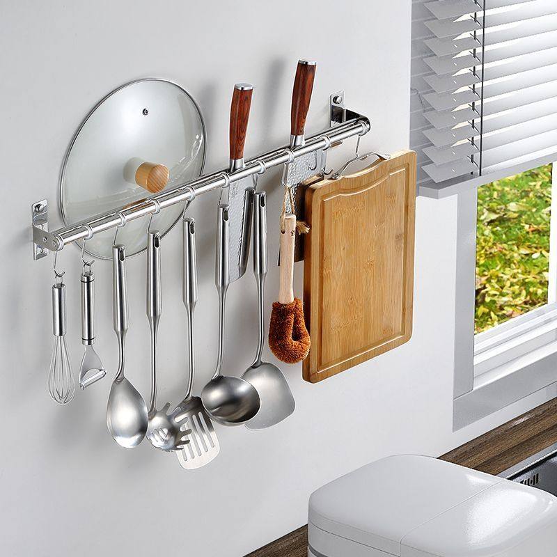 厨房挂钩架免打孔不锈钢壁挂式挂杆置物架收纳插刀架多功能架子