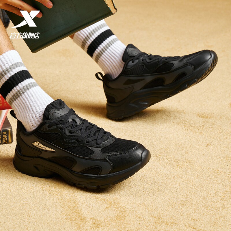 特步流派-SPX休闲鞋冬季革网正品运动鞋男鞋轻便爸爸鞋复古老爹鞋