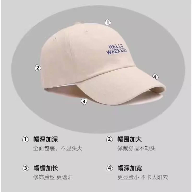 2026年韩版HELLO刺绣大头围棒球帽女百搭显脸小加大加宽鸭舌帽