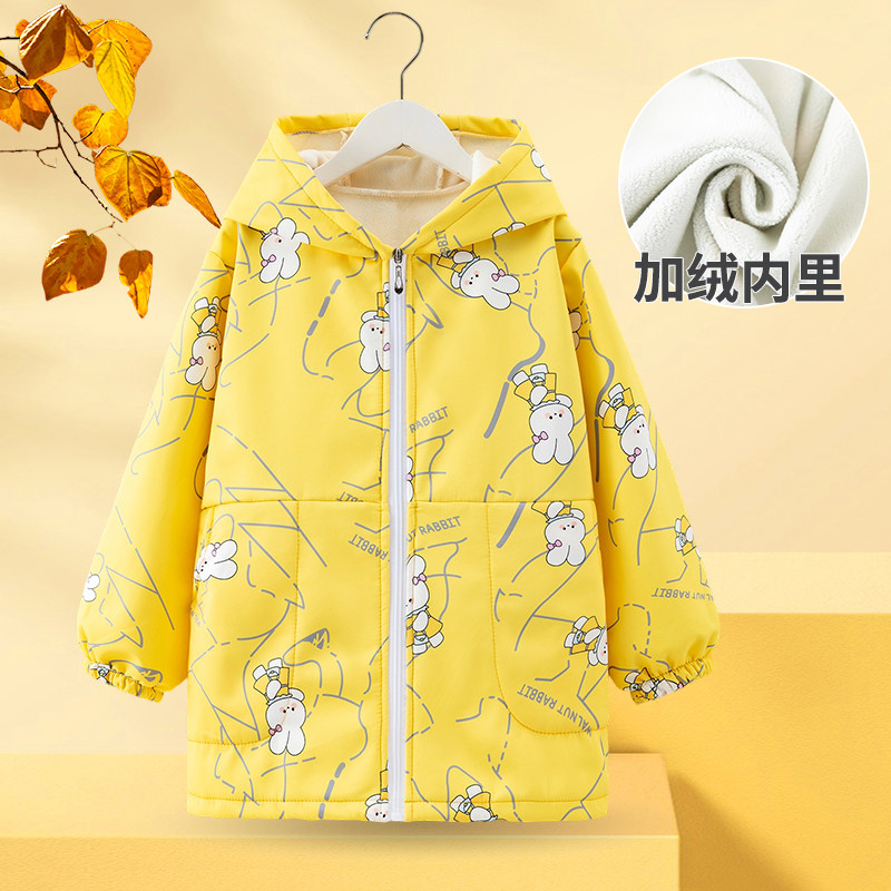 中大童衣防水防脏罩衣中长款护衣秋冬季加绒外套外穿羽绒服加长