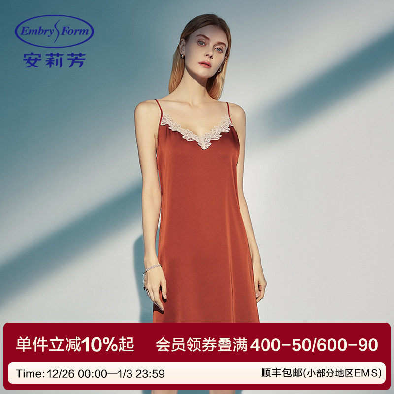 安莉芳薄款性感蕾丝深V吊带睡裙女士舒适短款带杯垫家居裙