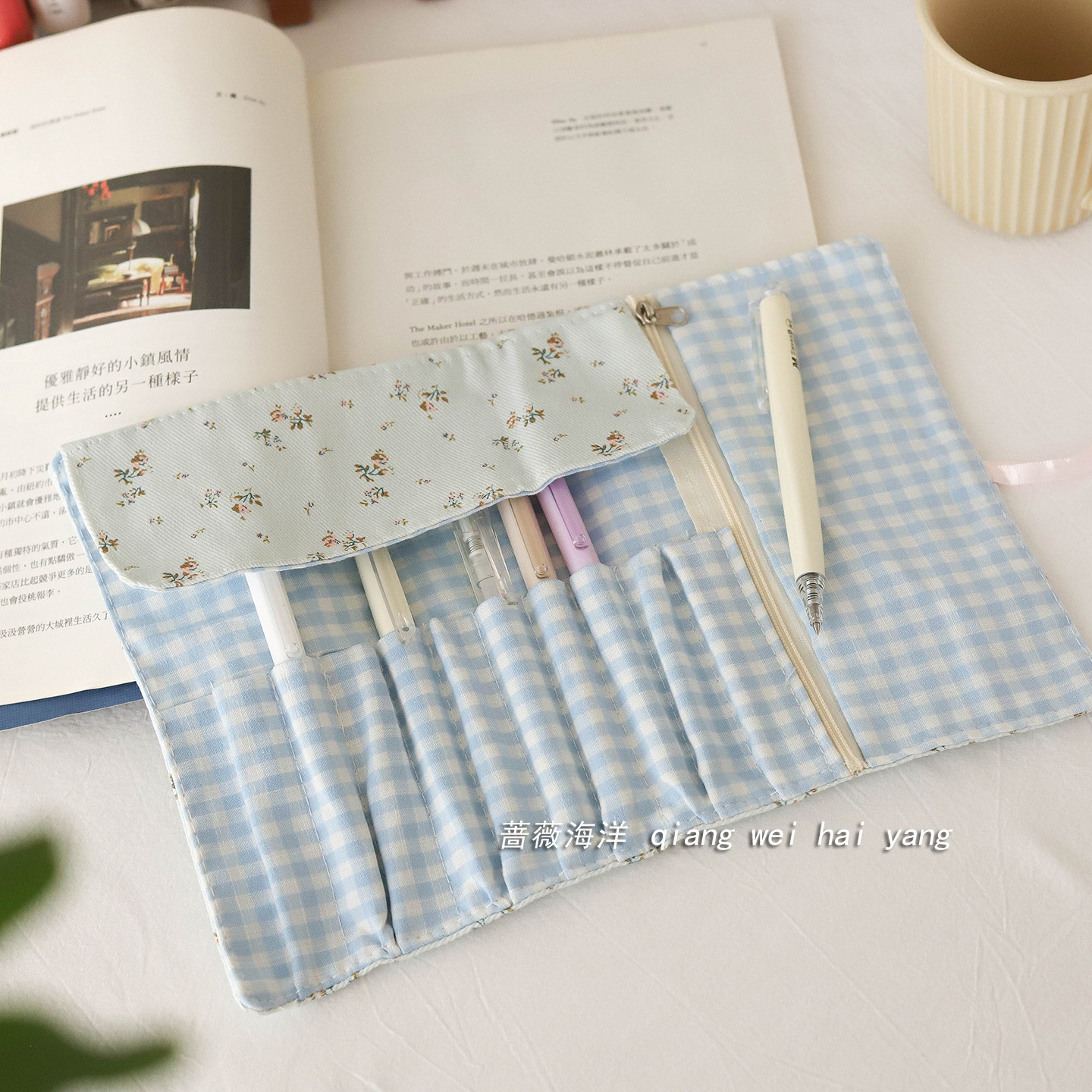 温柔碎花卷帘笔袋 少女情怀总是诗 韩系女生大容量文具袋收纳包