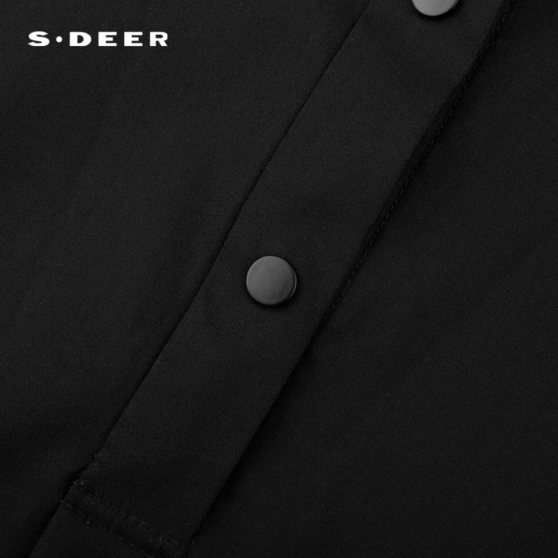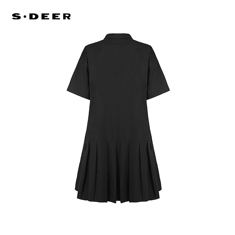 sdeer圣迪奥女装学院风翻领百褶拼接衬衫连衣裙S252Z1217