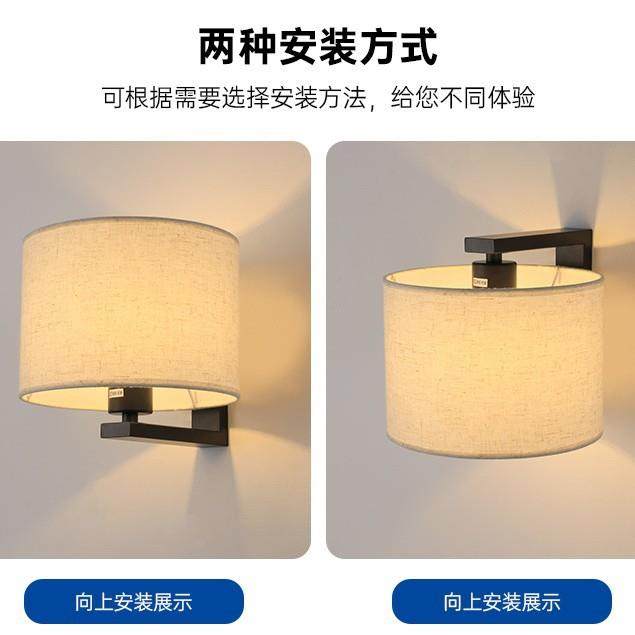 酒店床头壁灯简约新中式卧室壁灯茶室书房圆形布艺灯罩氛围照明灯