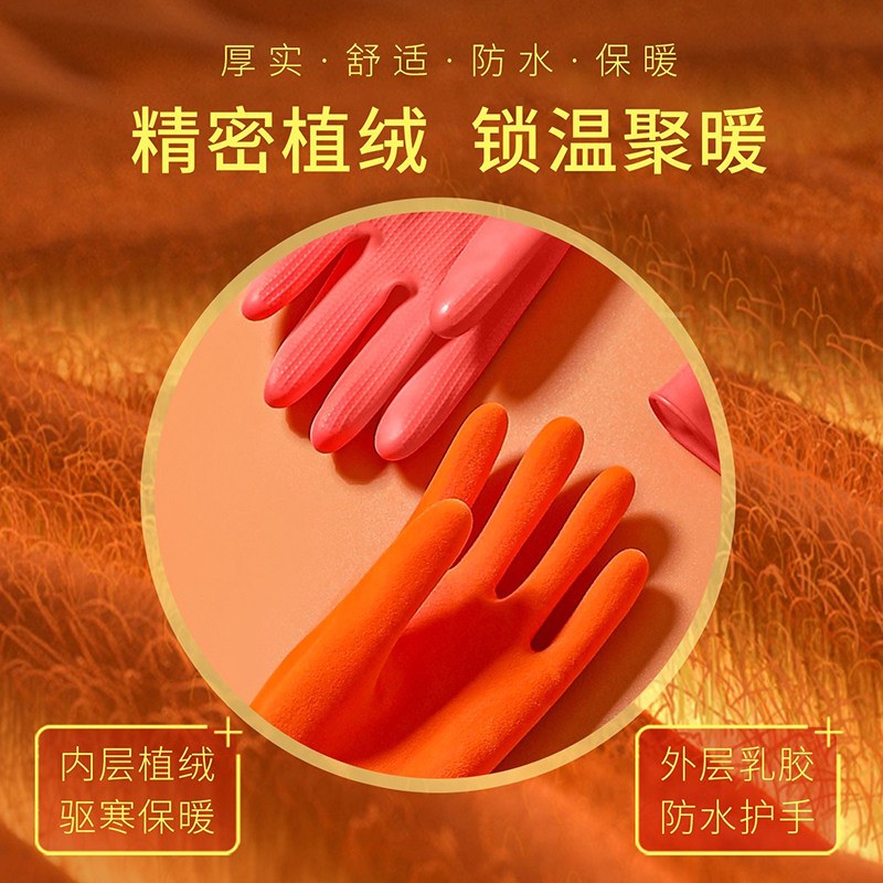 洗碗手套加绒加厚保暖款男女厨房耐用橡胶乳胶皮洗衣加长手套家务